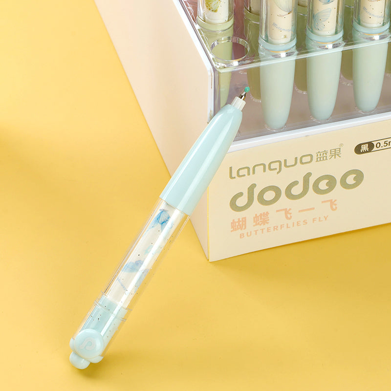 Preciosos bolígrafos de gel giratorios Languo D5004 - JZ Butterfly con mecanismo de clic, ¡en expositor! Su diseño giratorio con motivos de mariposa los hace llamativos y perfectos para exhibir. M.82