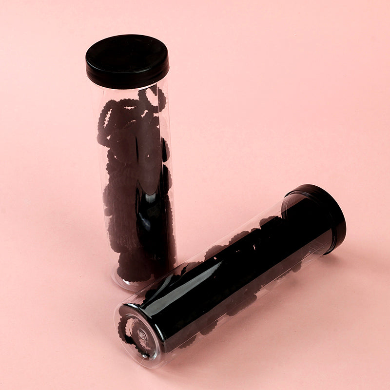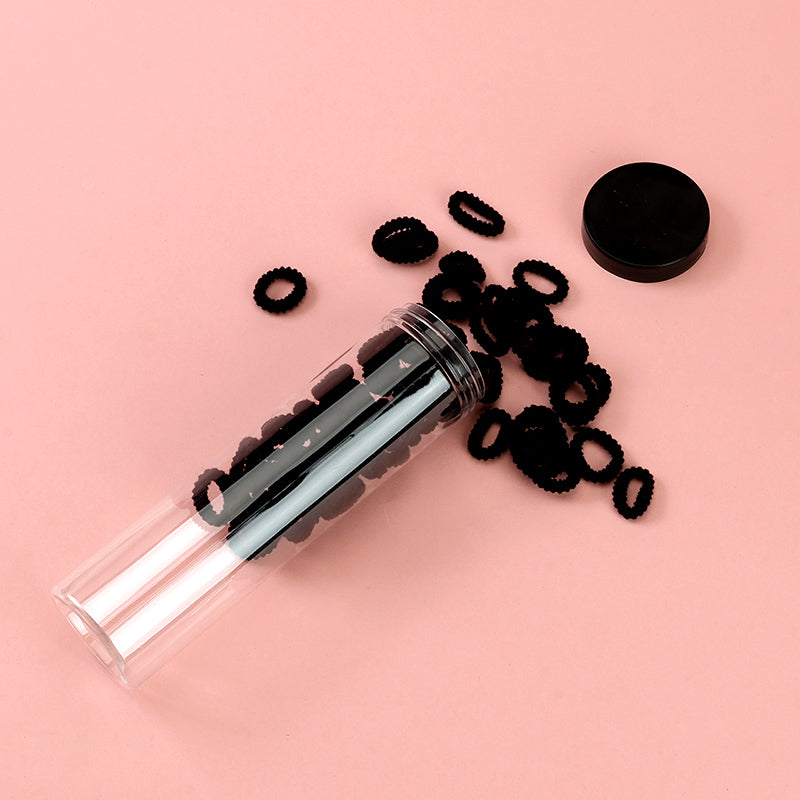 M42 Black Ribbed Terry Cloth Hair Ties for Children in a Bucket (80 Pieces)