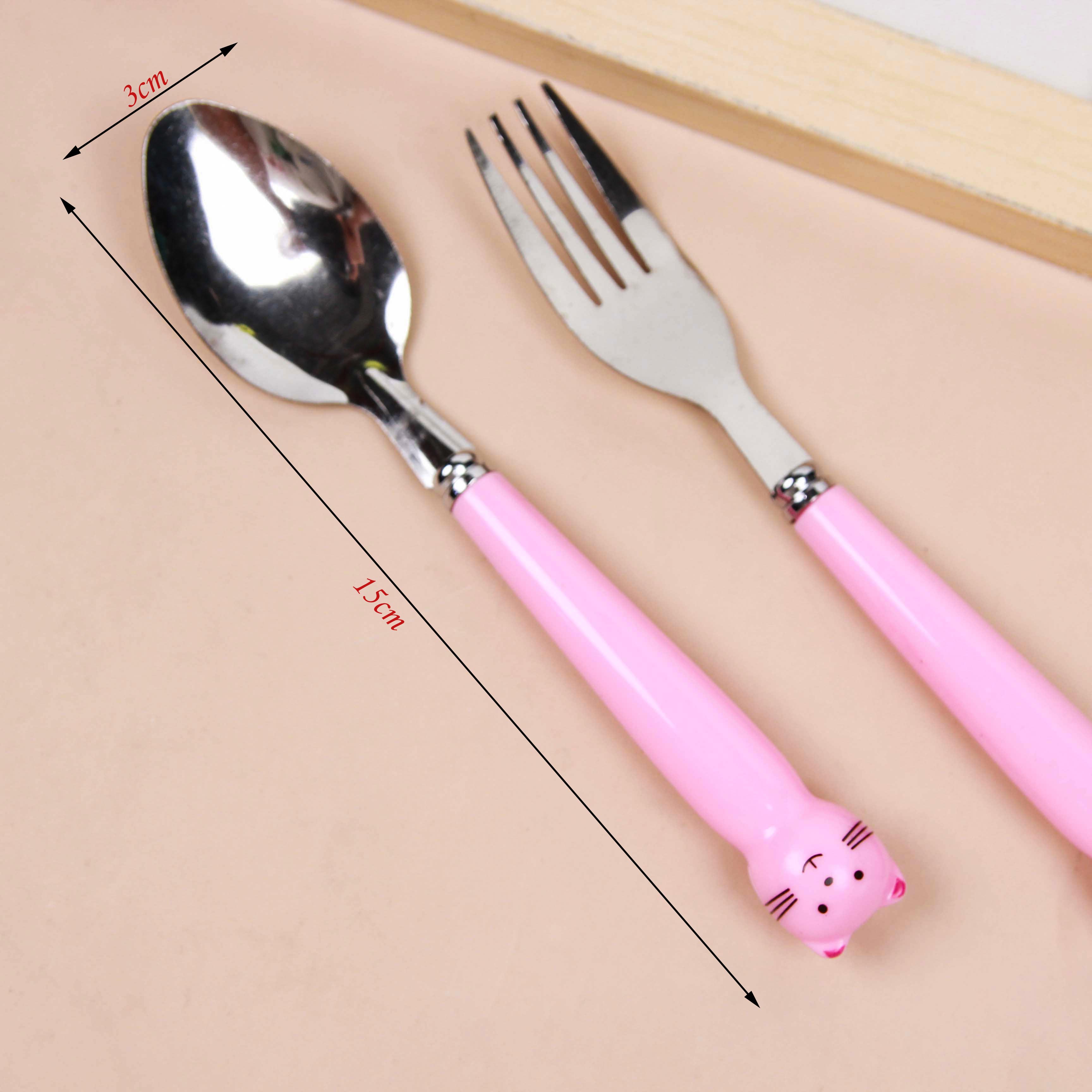 Cartoon-pattern Spoon & Fork Set (Assorted Styles) M.66
