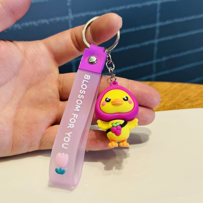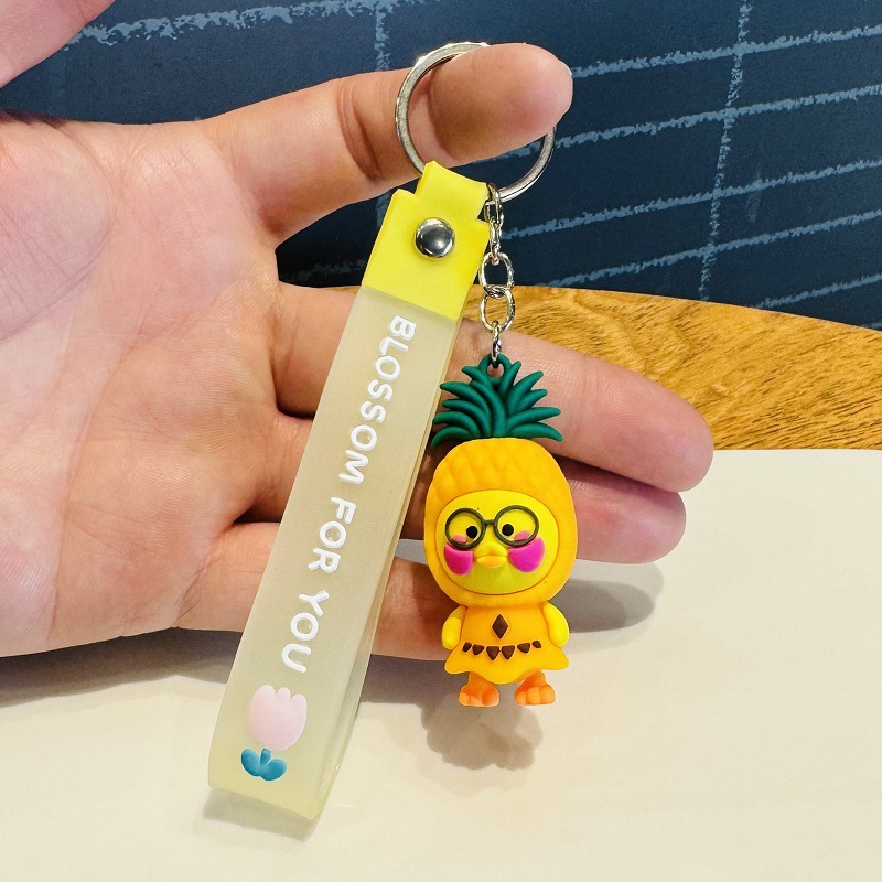 Wholesale of Creative Cartoon Fruit Duck Doll Charms 3D Figure Keychains Car Key Rings Activity Small Gifts M.72